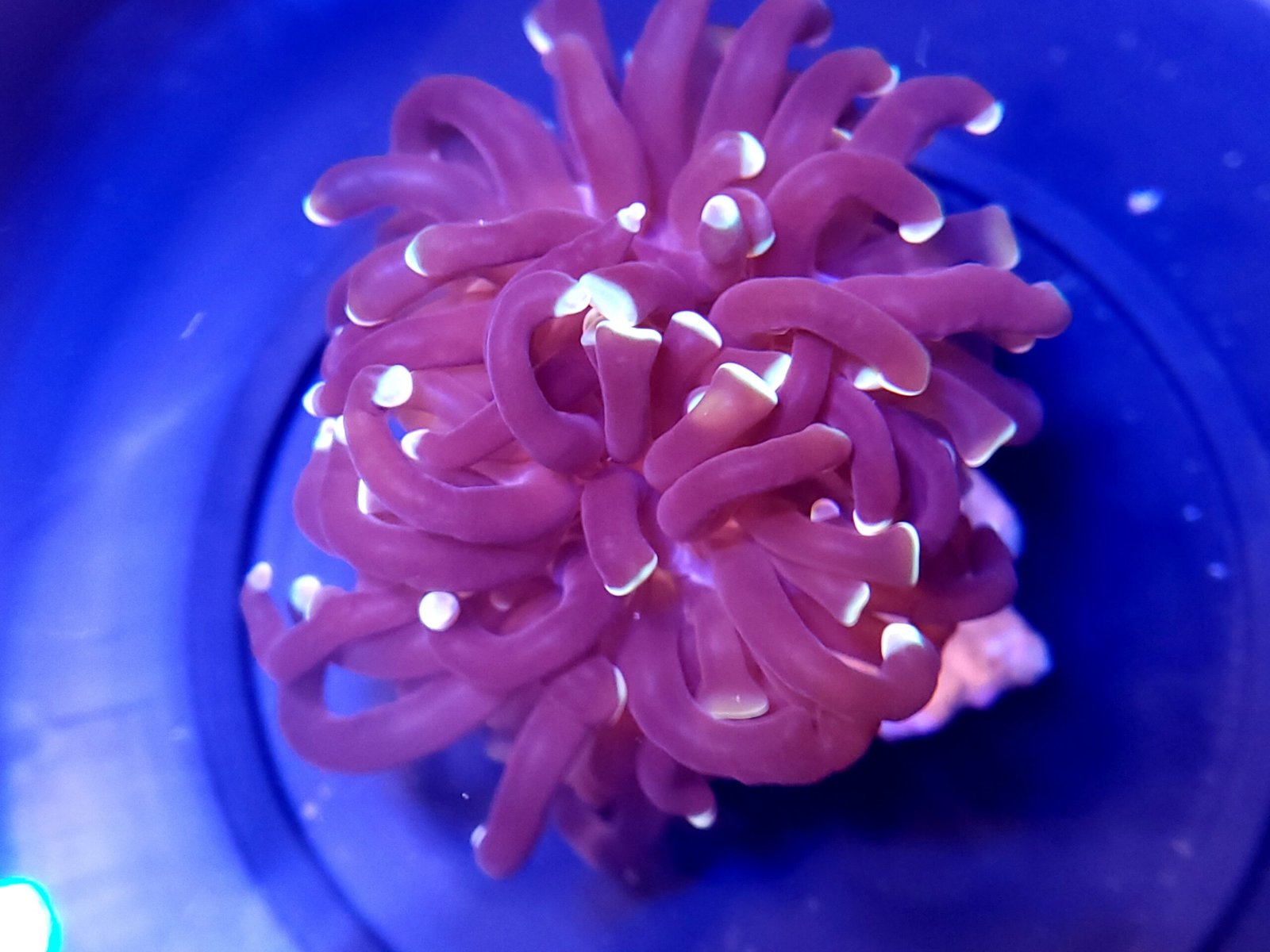 One of the three primary Euphyllia corals, together with Torches and Frogspawns, is the Hammer coral. When compared to the tips of torch and frogspawn corals, the hammer-shaped tips of hammer corals are very wide. Hammer corals require similar maintenance to other Euphyllia; they prefer a medium flow, medium light environment, a slightly unclean tank, and an abundance of nutrients. Wall hammers and branching hammers are the two primary categories of hammers. The Wall variant frequently has brighter and more eye-catching patterning and is larger but grows more slowly than other varieties. Often, the Branching type has smaller heads that develop more quickly and can be fragged. Both types of hammer corals have stunning hues, such as orange, gold, blue.